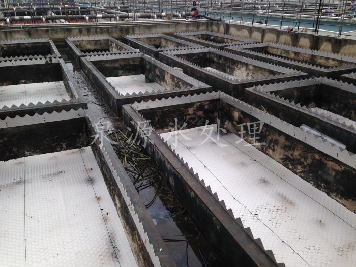 泉源公司填料施工隊(duì)安裝蜂窩斜管填料施工現(xiàn)場沉淀池安裝完成高清圖片。