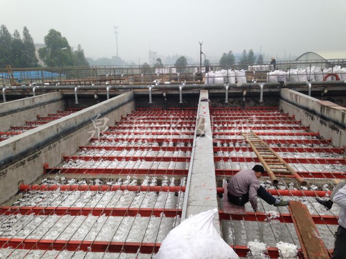 圖片是泉源水處理公司填料施工隊,在某污水廠施工組合填料安裝圖片。